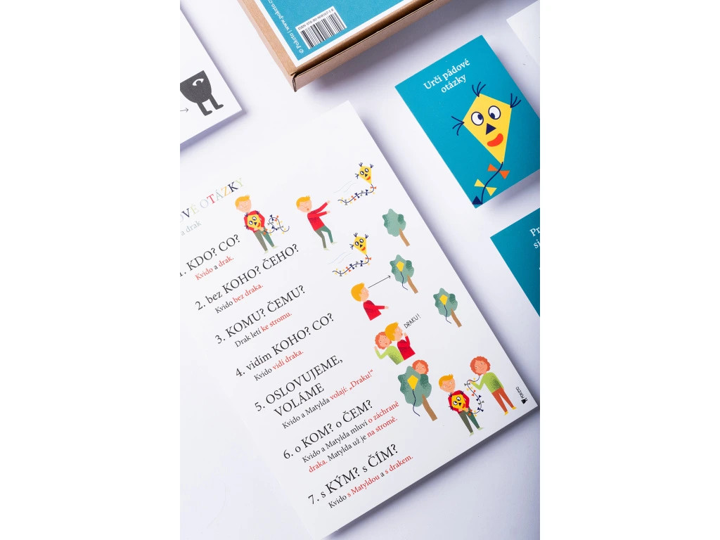 - Trénujte pořadí a znění pádových otázek: K tomu slouží jak knižní příběhy, tak prvních sedm kartiček v sadě.